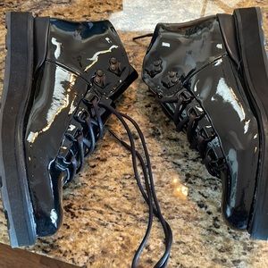 Blackstone Patent Leather Bootie. Black with lace up front. Ordinal box. Never worn.