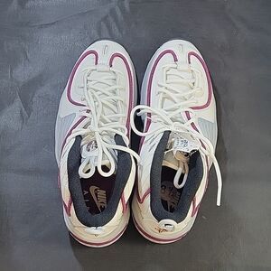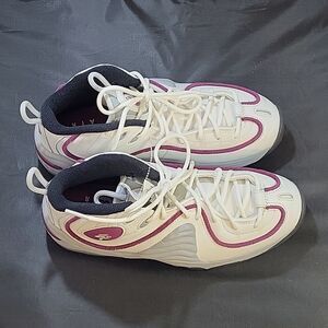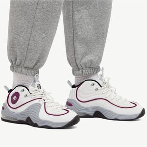 BRAND NEW NIKE AIR PENNY II LOW-TOP SNEAKERS SIZE 81/2 COLOR WHITE & ROSEWOOD Named after the Memphis Tigers’ college basketball coach, Penny Hardaway, sporty spearheads Nike introduce the Women’s Air penny II sneaker. This latest itera ion sees the label add a premium update on a classic silhouette for a court inspired finish.Mid padded collarBranding to tongue, side & rear