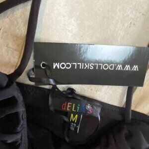 I have a BRAND NEW- NWT- Dolls Kill dELiA*s Obsessive Contemplation Goth/Black Dress with flowers, size M for sale. Gifted to me, but not something I would wear. Never worn. I am a size 5/6, athletic build, 34B for reference, fits like a glove. Cute parted ruffle in the front!