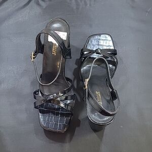 BRAND NEW OLIVIA MILLER HIGH BLOCK HEEL OPEN TOE ADJUSTABLE BUCKLE SANDAL SIZE 7.5 COLOR BLACK MADE WITH UPPER MAN MADE OUTSOLE RUBBER +MAN MADE HEEL HEIGHT MEASUREMENTS APPROX 4.75"INCHED THIS ITEMS IS BRAND NEW WITH TAG NO BOX CHECK THE PICTURES