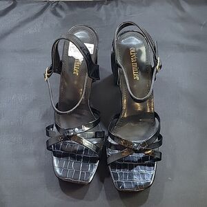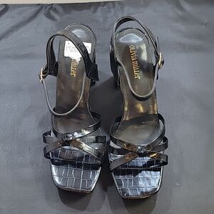 BRAND NEW OLIVIA MILLER HIGH BLOCK HEEL OPEN TOE ADJUSTABLE BUCKLE SANDAL