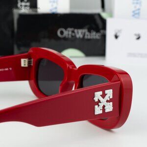 BRAND NEW Off-White CARRARA 507 Red Dark Grey Unisex Rectangular Sunglasses