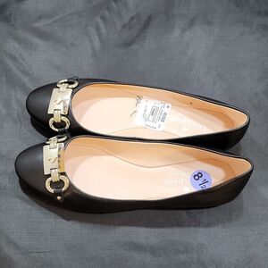 BRAND NEW PHOEBE FLAT IN BLACK LEATHER SIZE 81/2 COLOR BLACK An this iconic spade sweetly brands the gilded hardware detailing the vamp of this understated wear-with-everything flat set on a flexible rubber Shining hardware adorns the understated slip-on profile of Kate Spade New York's Phoebe flats for a smart addition to both dressy skirts and casual skinny jeansRound-toe slip-on flats Hardware detailing at toe cap Leather upper; leather lining; leather sole THIS ITEMS IS BRAND NEW WITH TAG CHECK THE PICTURES