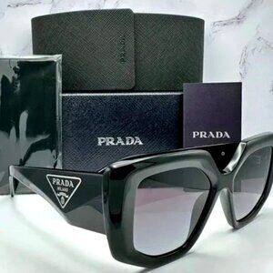 Discover timeless elegance with these brand-new, 100% authentic Prada sunglasses. Designed in Italy and crafted from premium black acetate, this pair features Prada’s signature triangle metal plaque logo on both temples — a subtle yet unmistakable mark of luxury.