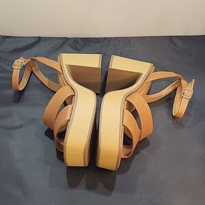 BRAND NEW REPORT WMS ZUES BLOCK HEEL DOUBLE STRAP ADJUSTABLE BUCKLE SANDAL SIZE 9 COLOR TAN MADE WITH ALL MAN MADE MATERIALS LINING UPPER TEXTILE BALANCE MANMADE MATERIALS HEEL HEIGHT MEASUREMENTS APPROX 4"INCHED THIS ITEMS IS BRAND NEW WITH TAG CHECK NO BOX CHECK THE PICTURES