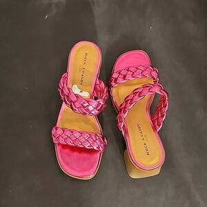 BRAND NEW ROCK&CANDY BY ZIGI DOUBLE BRAIDED STRAPS LOW BLOCK-HEEL SANDAL SIZE 6.5 COLOR HOT PINK OPEN-TOE MADE WITH ALL MAN-MADE MATERIALS HEEL HEIGHT MEASUREMENTS APPROXIMATELY 21/2"INCHES THIS ITEM IS BRAND NEW WITH TAG NO BOX CHECK THE PICTURES