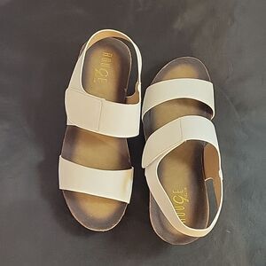 BRAND NEW ROUGE HELUIM DOUBLE STRAP VELCRO CLOSURE CORK WEDGE SANDAL SIZE 71/2 COLOR WHITE MADE WITH FAUX LEATHER UPPER TOUCH-FASTEN ANKLE STRAP CUSHIONED FOOTBED WITH BURNISHED DETAILS CORK MIDSOLE WITH STUDDED TRIM OPEN TOE HEEL HEIGHT MEASUREMENTS APPROX 2"1/2"INCHES GRIPPY SYNTHETIC OUTSOLE SYNTHETIC THIS ITEMS IS BRAND NEW WITH TAG AND BOX CHECK THE PICTURES