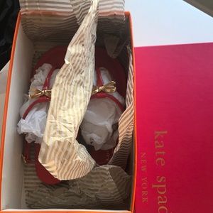 Never worn new Kate spade bow sandals! These sandals are a gorgeous red shade with a gold bow accent, come in original packaging with box!