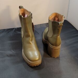 BRAND NEW SAM & LIBBY WOMEN' CHELSEA BOOTS SIZE 7 COLOR OLIVER GREEN Women's Chelsea Boots are a fall classic. Chelsea boots are ankle leangth, feature a round toe, back pull tabs, rubber sole, and block heal. Man-made fabric upper balance man made materials lining textile outsole man made materials Rubber sole Cushioned footbed These are great with your favorite pair of jeans.heel height measurements apron 3"inched THIS ITEM IS BRAND NEW WITH TAG NO BOX CHECK THE PICTURES