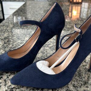 BRAND NEW - SAMMITOP Women’s Blue Suede High Heel Pumps with Ankle Strap!