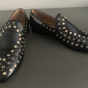 leather & gold studded loafers