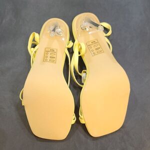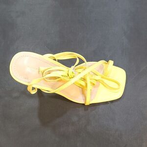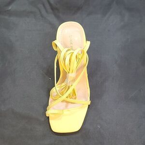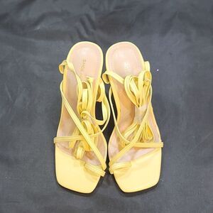 BRAND NEW SHOE REPUBLIC LA LACE-UP HIGH HEEL SANDALS SIZE 8.5 COLOR LIGHT YELLOW Man made materials.wrapped lace-up square toe Cushioned insole. Felted rubber sole has nonskid markings. Lace-Up High Heel Sandals are ready to show off and have some fun! Shiny skinny heel these flirty heels that feature a trendy with this Long matching laces sprout from the sides and wrap around the ankle, all atop a sultry blade heel height measurements approximately 4.15"inched THIS ITEMS IS BRAND NEW WITH TAG AND BOX CHECK THE PICTURES