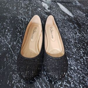 BRAND NEW SHOE LAND BLACK RHIENSTONE SLIP-ON WOMEN"S FLAT SIZE 8 COLOR BLACK ROUND TOE ALL MAN-MADE MATERIAL THIS ITEMS IS BRAND NEW WITH TAG NO BOX CHECK THE PICTURES