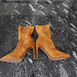 BRAND NEW SHOE LAND FAUX SUEDE ZIP SIDE SOCK BOOTS SIZE 10 COLOR CONGNA BROWN feature a side zipper closure These trendy faux suede stiletto booties are a stylish moment for sure! They feature a pointed toe, an inner zipper closure, a fitted design that hits mid-calf, and a sleek stiletto heel. Pair these booties with a basic dress and a chic shoulder bag.Fit & Features Pointed toe Inner zipper closure Fitted design Tall stiletto heel Faux suede material heel height measurements approximately 4".25inched THIS ITEMS IS BRAND NEW WITH TAG NO BOX CHECK THE PICTURES (FYI THE FIRST PICTURES IS JUST A MODEL TO SHOW WHAT THE BOOT LOOK ON CHECK THE PICTURES)