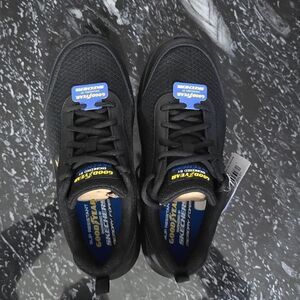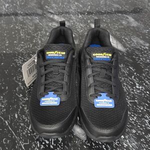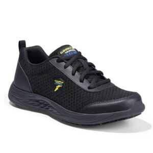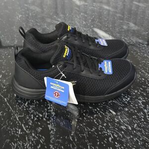 BRAND NEW SKECHERS GOODYEAR WOMEN'S ROGUE SLIP RESISTANT SHOES SIZE 9.5 COLOR BLACK Stride with confidence anywhere with Goodyear and sure-footed comfort with Goodyear Engineered by Skechers Rogue shoe. This women's casual and sporty slip-resistant design features a black mesh upper with synthetic overlays and a lace-up front closure, Die Cut Skechers Memory Foam cushioned insole, shock-absorbing midsole and a durable rubber high-traction outsole. THIS ITEM IS BRAND NEW WITH TAG AND BOX CHECK THE PICTURES
