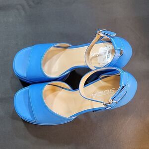 BRAND NEW SODA FAUX LEATHER HIGH PLATFORM CHUNKY ANKLE STRAP HEEL SANDAL SIZE 71/2M COLOR BLUE It features sexy in these high platform sturdy chunky heels. It features open toe, faux leather material, adjustable ankle strap, and a sassy 2" platform with 5.5" block heel. True to Sizeleather material, adjustable ankle strap, and a sassy 2" platform with 5.5" block heel. True to Size. Order your true size high platform block heel ankle strap heels More details Specifications Shoe Category Women's Shoes THIS ITEMS IS BRAND NEW WITH TAG NO BOX CHECK THE PICTURES