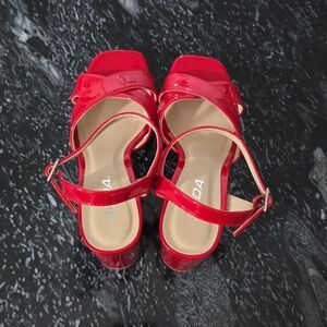 BRAND NEW SODA SLOPE-H CRISS-CROSS ADJUSTABLE BUCKLE ANKLE STRAP SANDAL FEATURING SQUARE OPEN TOE SIZE 6 COLOR RED PAT MADE WITH ALL MAN-MADE MATERIAL LINING UPPER MAN-MADE MATERIAL HEEL HEIGHT MEASUREMENTS APPROX 4"INCHES THIS ITEMS IS BRAND NEW WITH TAG NO BOX CHECK THE PICTURES (FYI THE FIRST JUST A MODEL TO SHOW WHAT THE SHOE LOOK ON CHECK THE PICTURES)