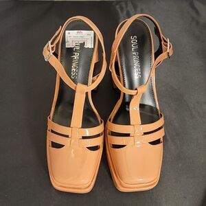 BRAND NEW SOUL PRINCESS BLOCK HEEL SANDAL SIZE 7 COLOR PEACH MADE WITH ALL MAN MADE MATERIALS featuring Rounded Square Toe 5.25" Heel 1.75" Platform Adjustable Ankle Strap Material(s) multi-Strap Leather Upper Leather Lining Padded Leather Insole man made materials. THIS ITEMS IS BRAND NEW WITH TAG NO BOX CHECK THE PICTURES (FYI, THE FIRST PICTURES IS JUST A MODEL TO SHOW HOW THE SHOE LOOK ON FEET CHECK THE PICTURES)