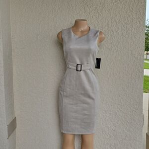 BRAND NEW STELLA &JULE SLEEVELESS ROUND NECK LINE SHEATH DRESS SIZE 6 COLOR GRAY INVIBLE BACK ZIPPER CLOSURE VERY SOFT MATERIAL FEATURING SMALL BUCKLE DETAIL DECORATION TO MAKE THE DRESS MORE BEAUTIFUL GO FROM THE OFFICE THE CLUB EASILY EFFORTLESSLY OVER THE KNEE LENGTH THIS ITEMS IS BRAND NEW WITH TAG CHECK THE PICTURES (FYI THE FIRST PICTURES IS JUST A MODEL TO SHOW WHAT THE DRESS LOOK ON CHECK THE PICTURES)