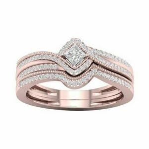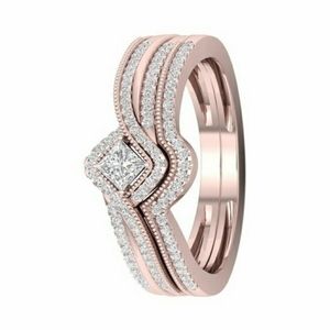 BRAND NEW STERLING ROSE GOLD WEDDING RINGS SET