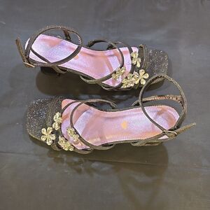 BRAND NEW STEVE MADDEN LOTTIE HEELED (Little Kid/Big Kid) SANDAL SIZE 4 COLOR SHIMMER BLACK Synthetic Rubber Closure type Buckle Water resistance level About this item Adjustable ankle strap with buckle closure Kitten heels Feature exquisite crystal floral embellishments Triple-strap upper Description Steve Madden Kids JLOTTIE ShoesYour little one deserves to walk in style, and the Steve Madden® Kids Lottie Sandals help achieve just that! These sandals feature exquisite crystal floral embellishments gracefully adorning the triple-strap upper, adding an extra touch of elegance to any ensemble. Made with a synthetic upper and lined with soft synthetic rubber, these sandals offer maximum comfort all day long.