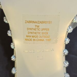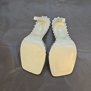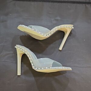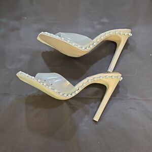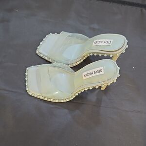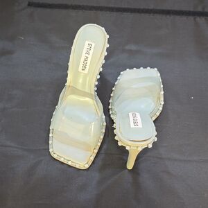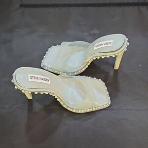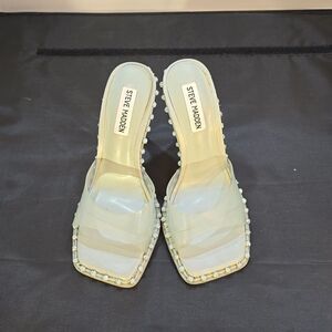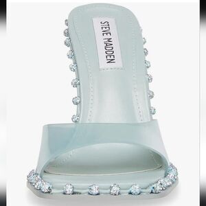 BRAND NEW STEVE MADDEN ZABRINA OPEN-TOE SLIDE STILETTO HEEL WITH RHINESTONESSIZE 7M COLOR MINT GREEN with Sole material Synthetic Outer material Lucite Closure type Slip On About this itemb Leather sole Heel measures approximately 4.5 inches" Lucite upper materialbVegan leather lining Trimmed in rhinestones Descriptionb Steve Madden Womens Zabrina Shoes THIS ITEMS BRAND NEW WITHOUT TAG CHECK THE PICTURES (FYI THIS ITEMS WAS THE FLOOR MODEL CHECK THE PICTURES)
