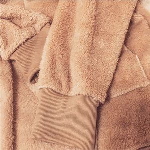 Hooded tan sweater - super cute and trendy - FAUX FUR FLEECE COAT :)Size chart is Centimeters --- ALSO AVAILABLE IN PINK,