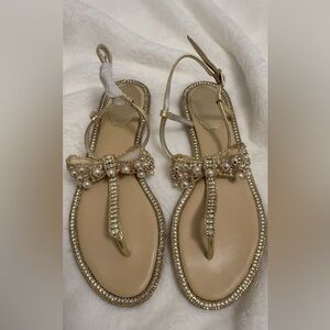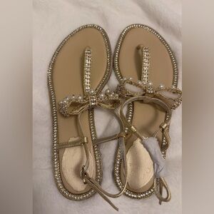 [BRAND NEW!!] Size US 6/6.5/7 Sparkling Gold Sandals with Pearl Bow