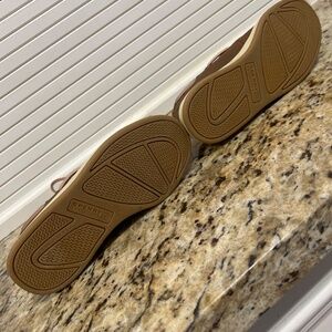 Leather upper in a casual slip-on boat shoe style with a moc, stitched toe 360° nautical lacing system Padded tongue and collar Textile lining, cushioning footbed Siped, rubber traction outsole.