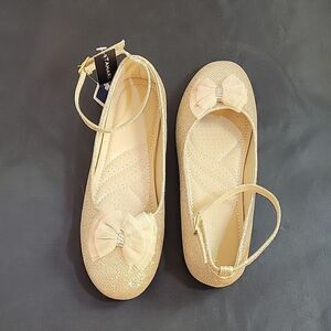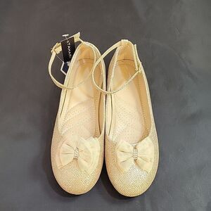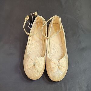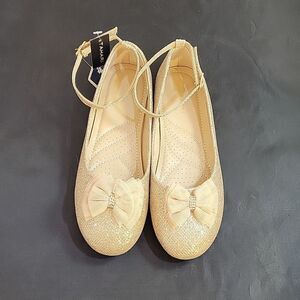 BRAND NEW TAHARI MARY BOWKNOT DESIGN ANKLE STRAP GLITTER EMBROIDERY SHOE SIZE 3 COLOR GOLD METALLIC GLITTER MADE WITH ALL MAN MADE MATERIALS THIS ITEMS IS BRAND NEW WITH TAG CHECK THE PICTURES