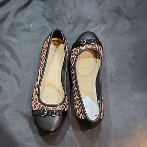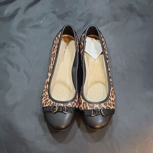 BRAND NEW TIME AND TRU WOMEN'S BUCKLE TOE LEOPARD FLAT G1