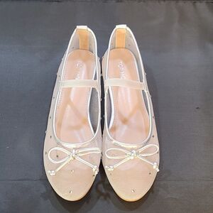 BRAND NEW TOP MODA RHINESTONE JANE STYLE MESH DESIGN WOMEN'S FLAT SIZE 61/2 COLOR SILVER Sole material Mesh Outer material Mesh Closure type Pull-On Breathable mesh upper for enhanced comfort and airflow stylish Mary Jane strap adorned with sparkling rhinestonesv ound toe design for added comfort and versatilitylat sole ensures all-day wearability without sacrificing style Perfect for casual outings, special events, and everyday wearCombines elegance and comfort in one chic tep into elegance and comfort with the Women's Flat Round Toe Mesh Mary Jane Shoes with Rhinestone Decor. These stylish flats feature a breathable mesh upper that keeps your feet cool and comfortable throughout the day. The classic Mary Jane strap, adorned with sparkling rhinestones, adds a touch of glamour and sophistication to your look. ITEMS IS BRAND NEW WITH TAG NO BOX CHECK THE PICTURES