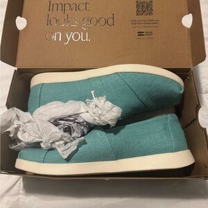 BRAND NEW - never been worn Tom’s. Vibrant teal color. Comfortable and cute.