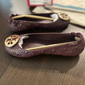 BRAND NEW TORY BURCH LEATHER BALLET FLATS! These never worn ballet flats are a gorgeous port/burgundy color with Tory Burch’s classic gold emblem on the front. These are in PRISTINE condition. There is not a scratch/scrape/mark on any part of these shoes. Not only are they in perfect condition, but they are also perfect for any occasion and comfortable to wear all day/night long! You are sure to stand out in these elegant and classic shoes at your next work event or night out! Don’t miss out on these amazing shoes!!