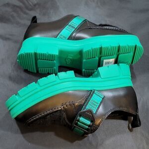 NEW UGG ASHTON SHOE PLUSH EMERALD GREEN WATERPROOF LEATHER SHOES SIZE 9 COLOR GREEN &BLACK featuring Merging shoe and boot, the Ashton makes an effortless statement with its combat-inspired lug sole, UGGplush™ tongue, and pops of bold color. Adding a branded graphic buckle strap, it's finished with a cushioned footbed and soft microfiber lining for all-day wearability. Coated leather, Synthetic nubuck, 10mm Uggplush™ 80% upcycled wool, 20% lyocell ears upper UGG® webbing, Metal buckle Textile lining (51% UNIFI RPET, 49% polyester), Microfiber lining Synthetic sockliner & Foam footbedDurable rubber outsole Embossed UGG® logo, Metal UGG® logo hardware Best for Casual THIS ITEMS IS BRAND NEW WITH TAG CHECK THE PICTURES