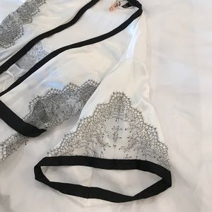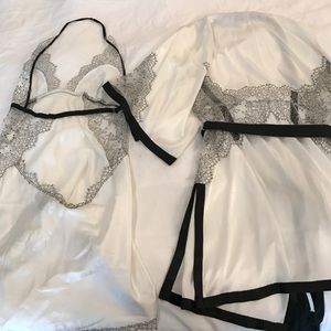 Brand new, never before worn Victoria's Secret lingerie nightgown and robe matching set. Tags attached. Slip is size large and robe is one size fits all. They are both white satin with black lace detailing throughout.