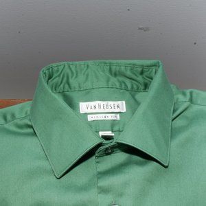 BRAND NEW- Van Heusen Dress Shirt-Light, Hunter Green. Never worn. Classy look with installed, permanent collar stays. Size 16 neck, 34-35, regular fit.