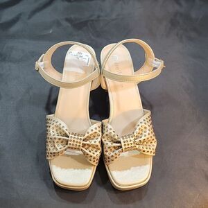 BRAND NEW WELLSFOUNTN RHINESTONE BOWNOT BLOCK HEEL OPEN-TOE SANDAL G1