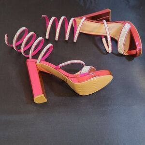BRAND NEW WILD DIVA LOUNGS RHINESTONES EMBELLISHMENTS SANDAL SIZE 10 COLOR PINK &SILVER SEQUIM featuring a round toe double strap Block Heels Rhinestone Vamp Open Toe Wrap Around Rhinestone Ankle Straps Platform Sole,made with all man-made materials lining upper balance man made materials lining sock textile man-made Approx. 1"inched platform and Heel Height measurements approximately 4" inches styles piral List With Two Rows Of Fashionable Rhinestone sandal Popular style THIS ITEMS IS BRAND NEW WITH TAG NO BOX CHECK THE PICTURES