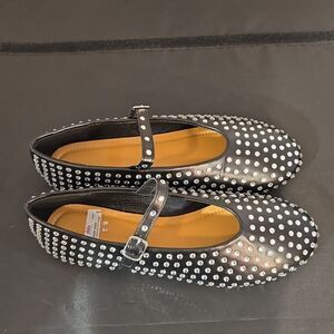 BRAND NEW WILD DIVA CRYSTAL RHINESTONE MARY JANE STUDDED BALLET FLATS SIZE 6 COLOR BLACK WITH CRYSTAL RHINESTONE STUDS EMBELLISHMENTS this Crystal Rhinestone Flats for Women Buckle Strap Mary Jane Flats Glitter Studded Ballet Flats Comfortable Round Toe Casual Ballet Classic design These crystal rhinestone flats for women are designed with a timeless ballerina style, featuring a closed round toe, flat heels, and glitter rhinestones for a touch of sparkle. Buckle strap closure: The buckle fastening allows you to easily adjust the shoes to find the perfect fit for your feet, ensuring both comfort and stability. Comfortable and versatile: These ballet flats are crafted to provide all-day comfort, making them suitable for casual outings or dressier occasions. Mary Jane style: The buckled straps add a charming Mary Jane touch to these flats, enhancing their overall aesthetic and giving them a feminine flair.Sole material rubber outer material Synthetic Closure type Buckle Whether you're running errands or attending a special event, these crystal rhinestone flats are the perfect choice for adding a touch of elegance and style to your outfit. THIS ITEMS IS BRAND NEW WITH TAG NO BOX CHECK THE PICTURES