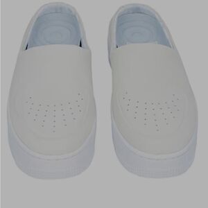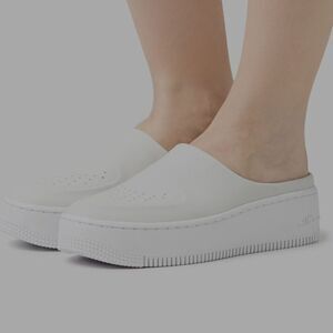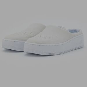 BRAND NEW WMNS AIR FORCE 1 LOVER XX'THE REIMAGINED SIZE 9.5 COLOR WHITE MEASUREMENTS Heel height 2.15 Inches, Platform height 1.56 Inches DETAILS brand logo, solid color, fabric inner, round toeline, wedge heel, rubber wedge, rubber cleated sole, contains non-textile parts of animal origin, mules model Shoe tip: Round