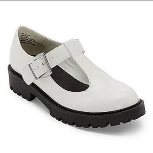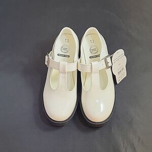 BRAND NEW WONDER NATION T-STRAP MARY JANE STYLE KID SHOES SIZE 13 COLOR WHITE WITH BLACK BOTTOM ROUND TOE SLIP-ON STYLE ADJUSTABLE BUCKLE CLOSURE MADE WITH ALL MAN MADE SINTETICO THIS ITEMS IS BRAND NEW WITH TAG CHECK THE PICTURES