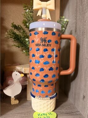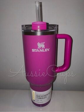 BRAND NEW - Wicked x Katie Kime Stanley Cup H2.0 Tall Tumbler in pink. Features floral and figure Wicked art print. Includes matching pink lid and straw. Large handle for easy grip. 40oz/1.18L.