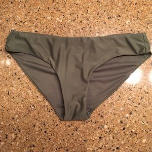 Brand new, never worn. Purchased these this month (May), took tags off to put in drawer but found a suit I liked better on Posh. Color is a moss green. Super adorable ruching on the butt. Will pair with the Crochet Swim Top in my listings if wanted!