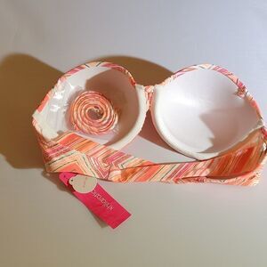 BRAND NEW XHILARATION MULTI-COLOR WOMEN"S PUSH UP SWIMSUITS BIKINI TOP SIZE MEDIUM COLOR LIKE GOLD, PINK, WHITE, TWO DIFFERENT ORANGE COLOR WITH A REMOVABLE STRAP TO TIE AROUND THE NECK TO BECOME A HALTER TOP IS DESIRED MADE WITH SHELL 83% POLYESTER 17%SPANDEX LINING 100%POLYESTER BRAND NEW WITH TAG CHECK THE PICTURES.