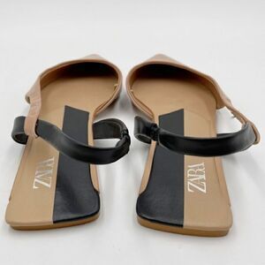 BRAND NEW ZARA SLINGBACK POINTY TOE MULE SANDAL SIZE 41 COLOR BLACK &TAN SQUARE BACK SLIP-ON STYLE ALL MAN-MADE MATERIALS LINING BALANCE UPPER MAN-MADE CUT-OUT DESIGN FOOTBED INSOLE HEEL HEIGHT MEASUREMENTS APPROX O.1/2 INCHES THIS ITEMS IS BRAND NEW WITHOUT TAG CHECK THE PICTURES I