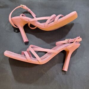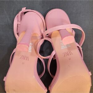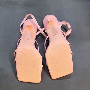 BRAND NEW ZARA SQUARE TOE MULTI-STRAP SANDAL SIZE 37 COLOR PINK FEATURES ADJUSTABLE BUCKLE ANKLE STRAP CLOSURE MADE WITH ALL MAN-MADE MATERIALS LINING BALANCE MAN MADE CUSHIONED FOOTBED INSOLE HEEL HEIGHT MEASUREMENTS APPROX 4"INCHES THIS ITEMS IS BRANDBNEW WITHOUT TAG CHECK THE PICTURES (FYI ONE OF THE SHOE HAVE A TINY DAMAGE IN ONE OF THE CORNER HEEL CHECK THE PICTURES)