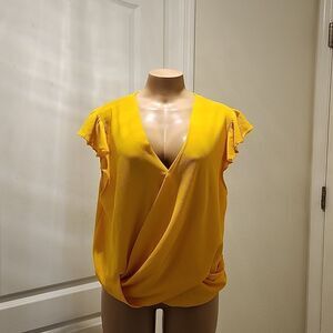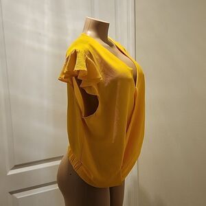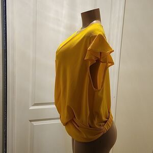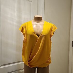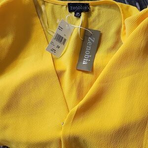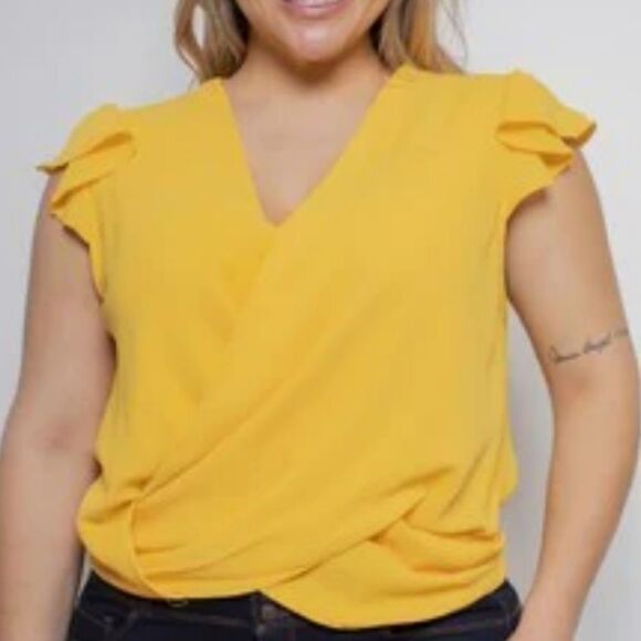 BRAND NEW ZENOBIA TOP CURVY V-NECK RUFFLE SLEEVE WOMEN'S BLOUSE SIZE 2XL COLOR SYNNY YELLOW FEATURES ruffle cap sleeve top. Elastic band across back with front petite button closure. True to size. 96% Polyester 4% Spandex THIS ITEMS IS BRAND NEW WITH TAG CHECK THE PICTURES