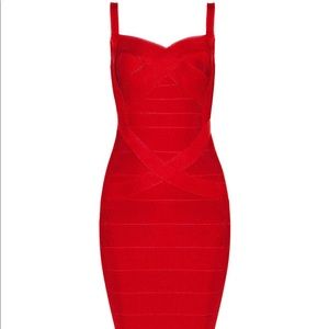 BRAND NEW fire red body con bandage dress. Super sexy! Style similar to Herve leger or Bebe. Wraps around body! Available in xs mall, small, medium, large and xlarge.