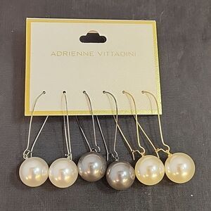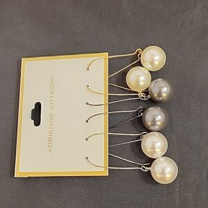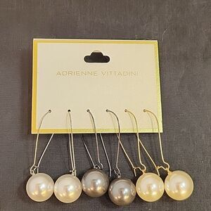 BRAND NEW ADRIENNE VITADINI SET OF 3 MULTI-COLOR DANGLE FAUX PEARL'S EARRINGS COLOR BEIGE CREAM AND GRAY THIS ITEMS IS BRAND NEW WITH TAG CHECK THE PICTURES